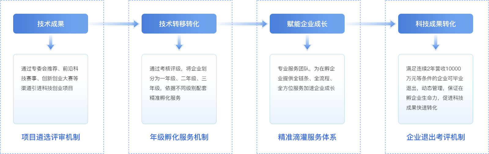 按照 ISO9001 质量体系高标准要求构建服务体系,并整合政策和服务资源,打造一支专业化服务团队,打通创业创新服务全链条,为在孵企业提供政策、技术、金融、人才、市场、培训、财税系统化服务,为创新创业保驾护航。