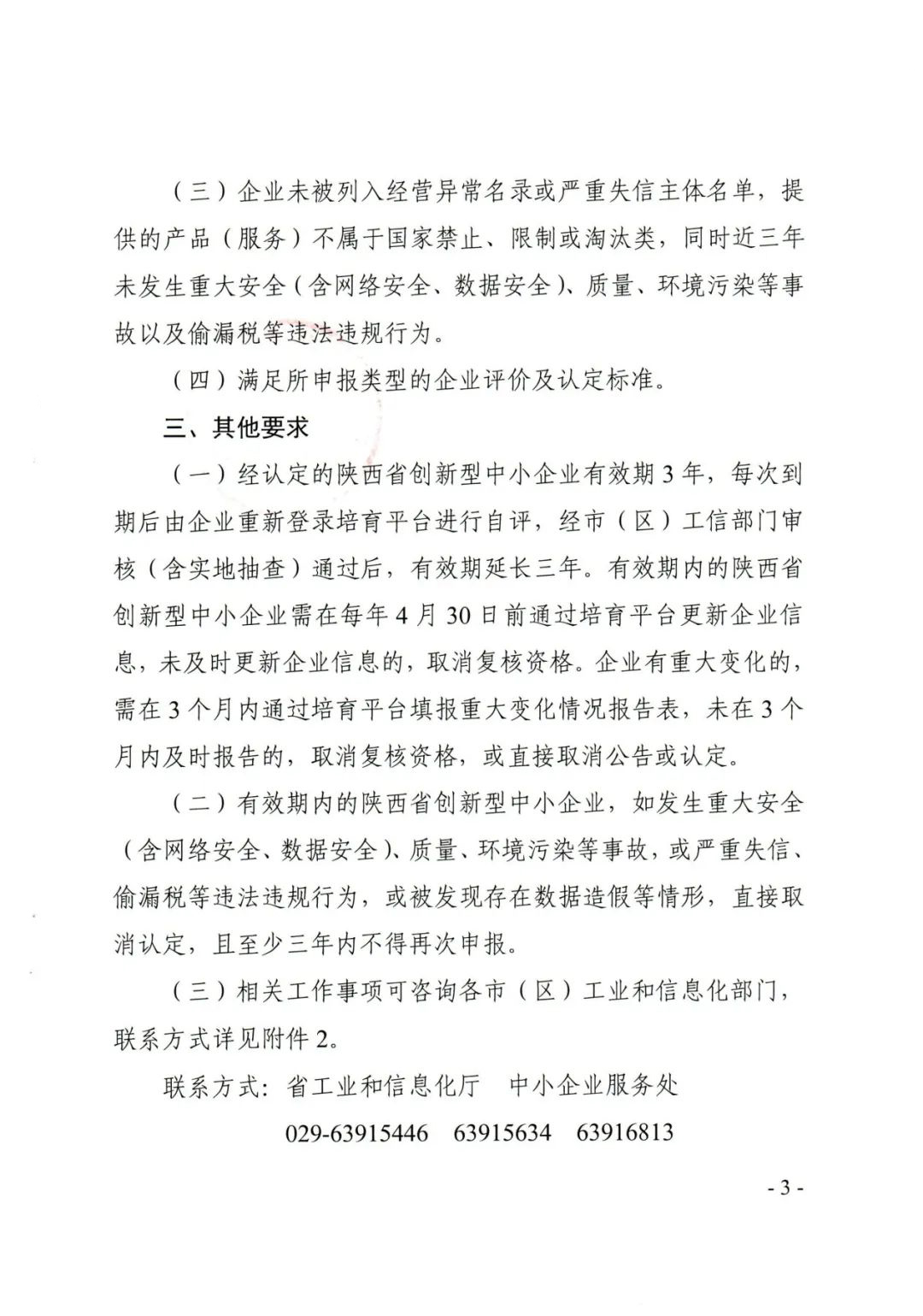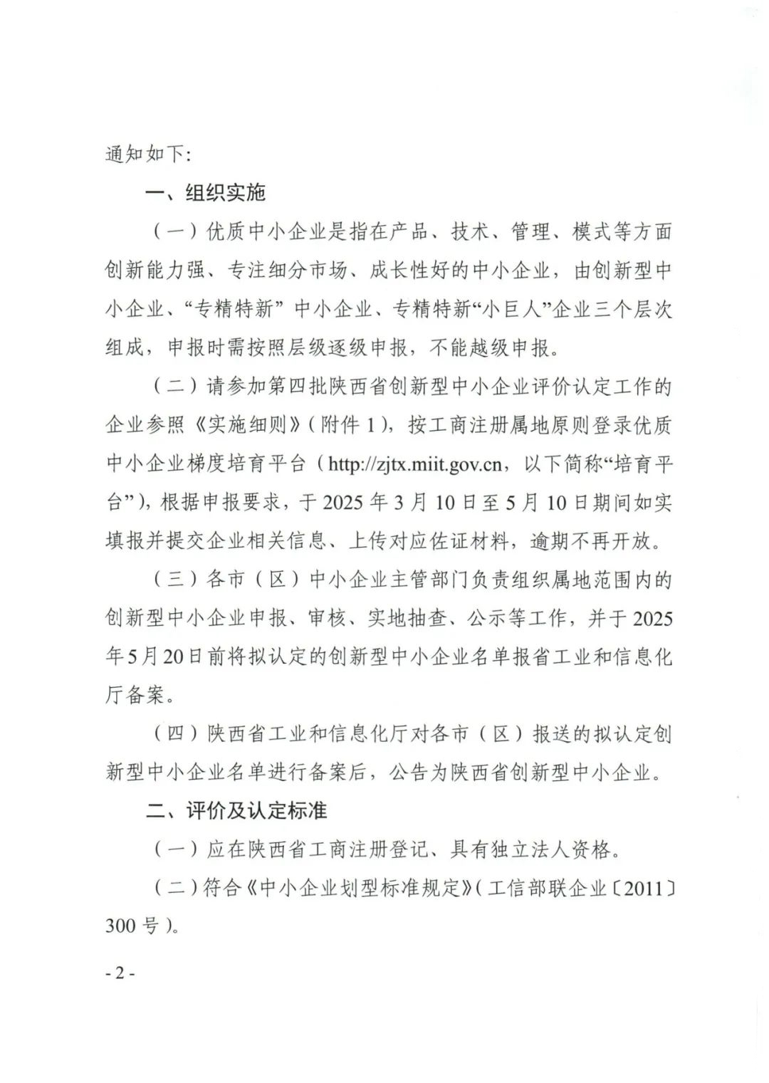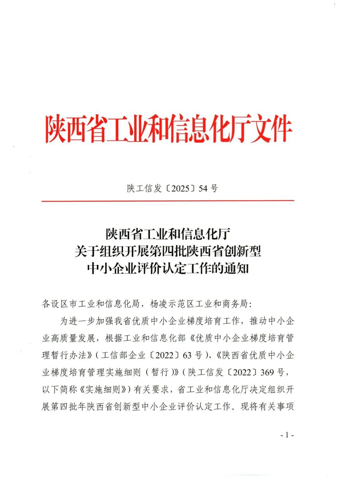 近日,陕西省工业和信息化厅发布关于组织开展第四批陕西省创新型中小企业评价认定工作的通知,具体内容如下: